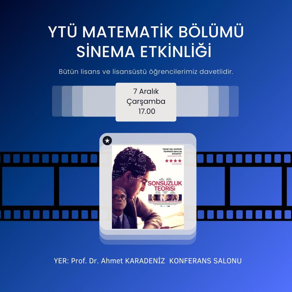 Sevgili Öğrenciler Prof. Dr. Ahmet KARADENİZ konferans salonunda 07 Aralık Çarşamba Saat: 17.00 da Sinema Etkinliği düzenlenecektir. Tüm öğrencilerimiz davetlidir.